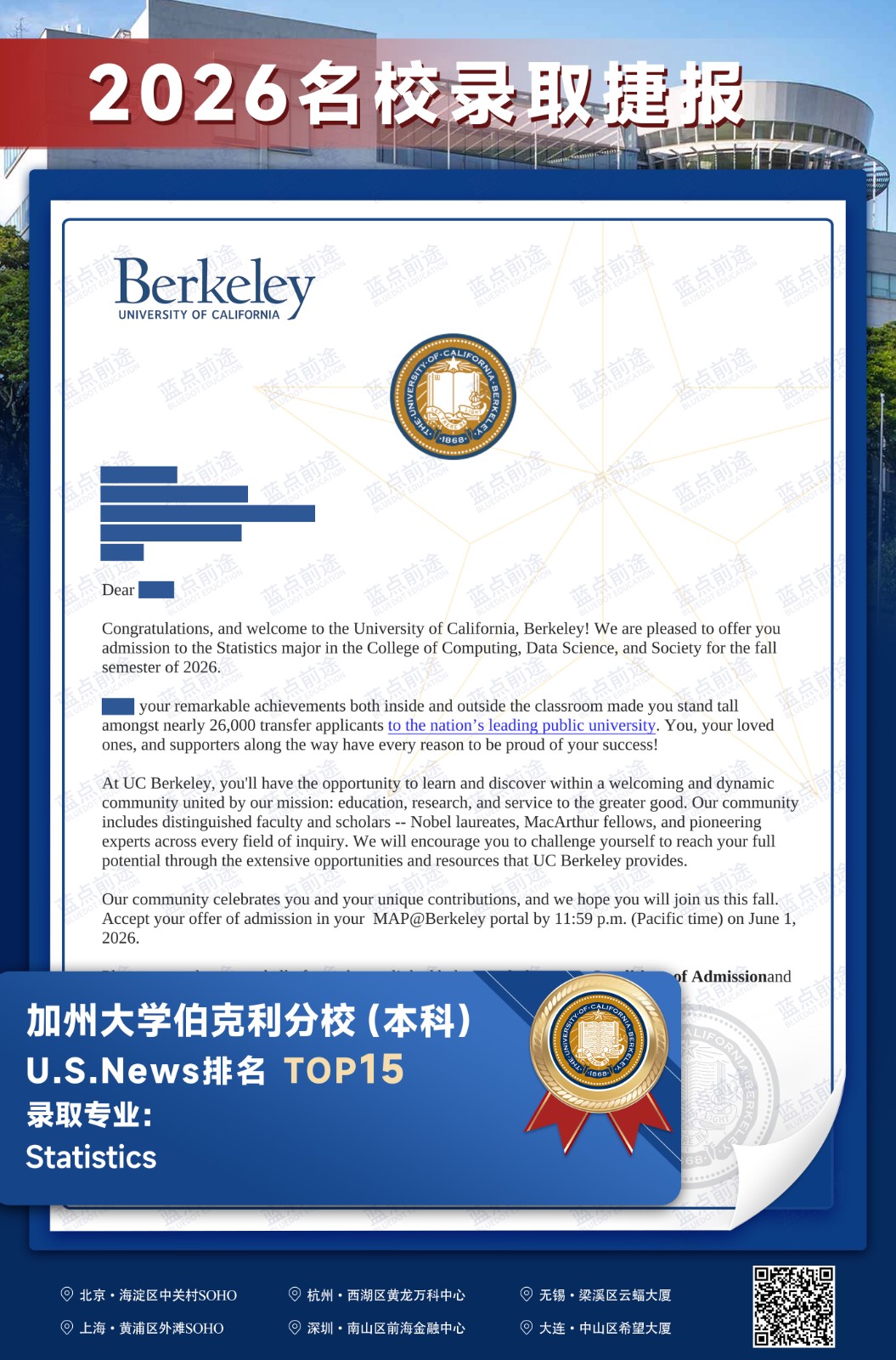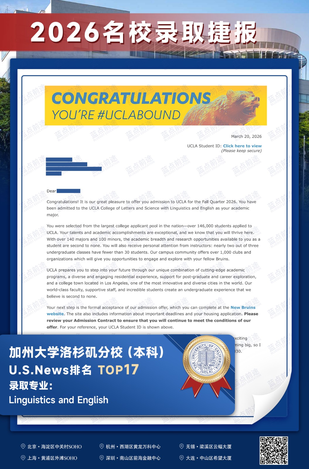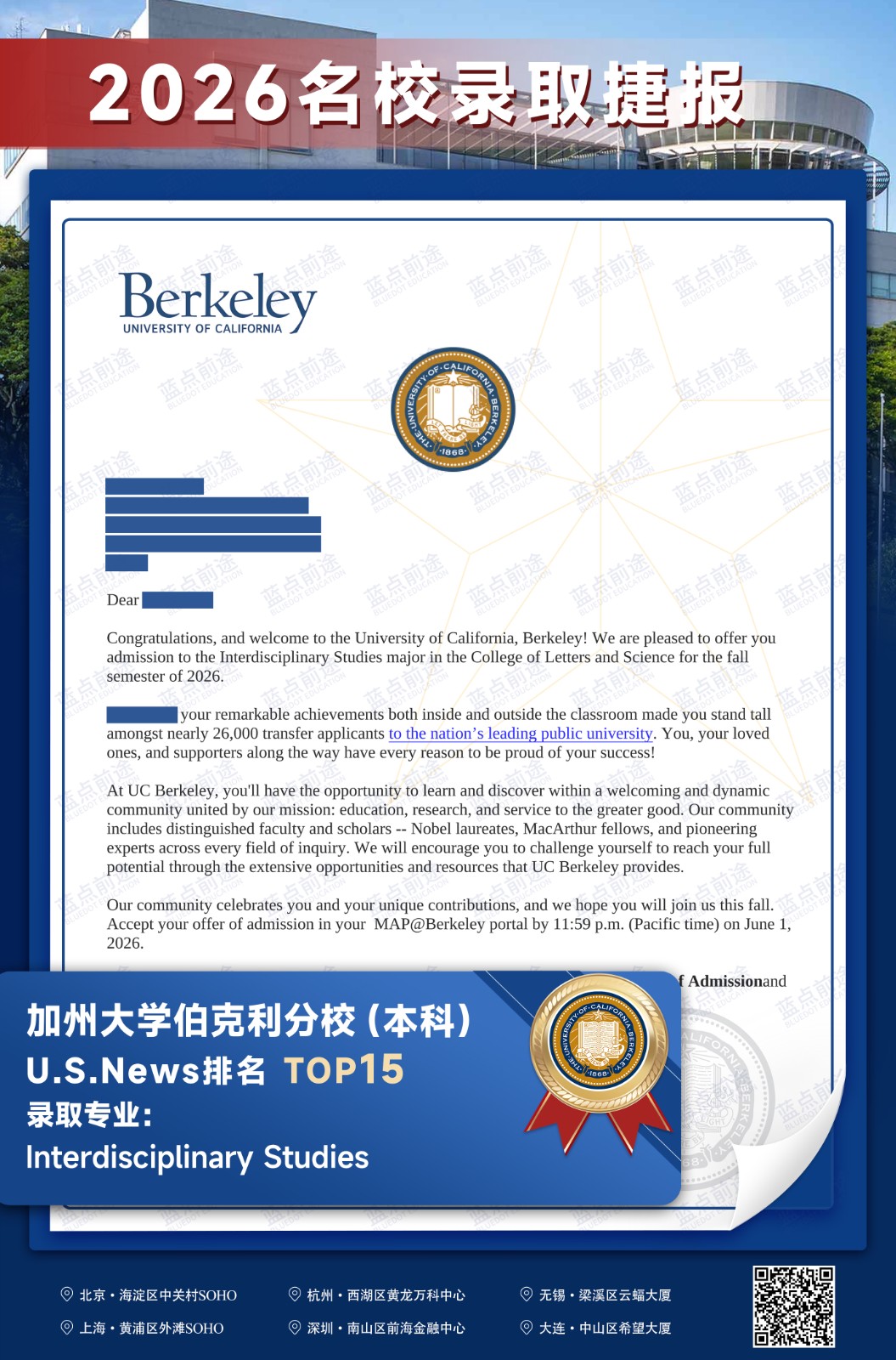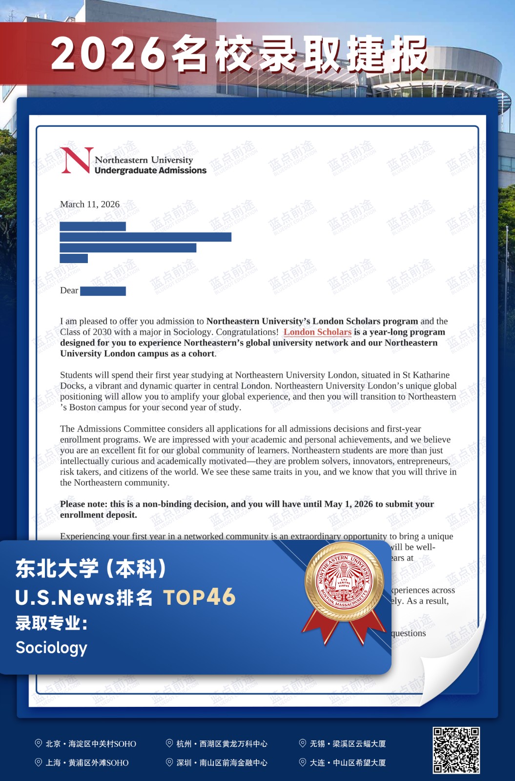 北京蓝点前途留学咨询有限公司由海外名校教授、前招生官、名校毕业学生、外籍文书导师等人员组成。公司于2013年在美国纽约成立,2018年在北京设立华北地区总部,先后在杭州、上海、深圳成立分公司。