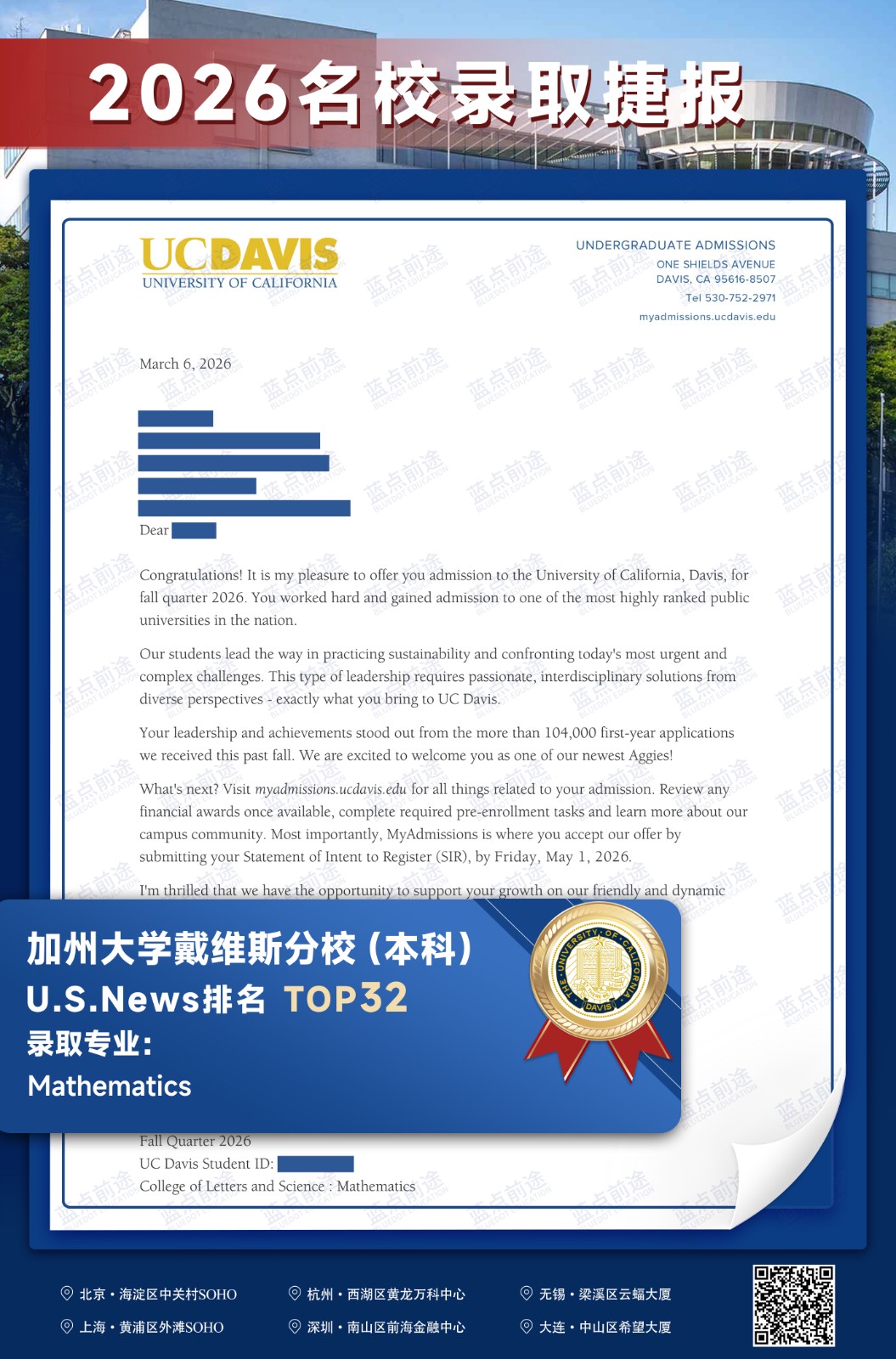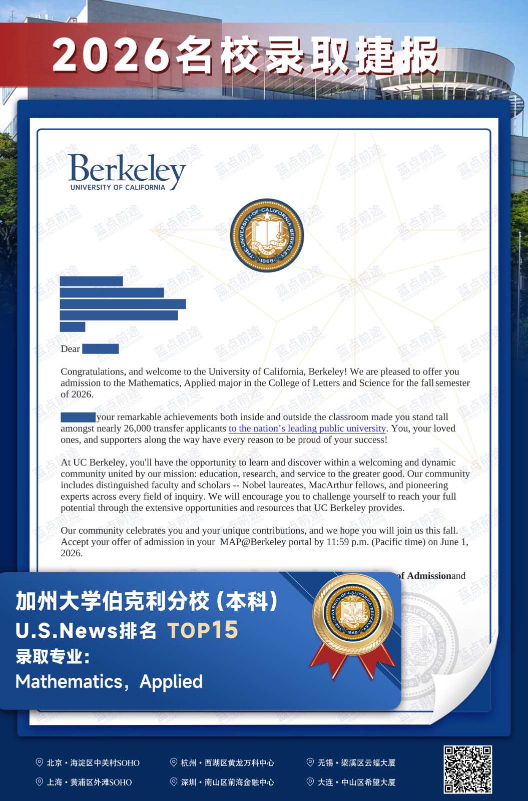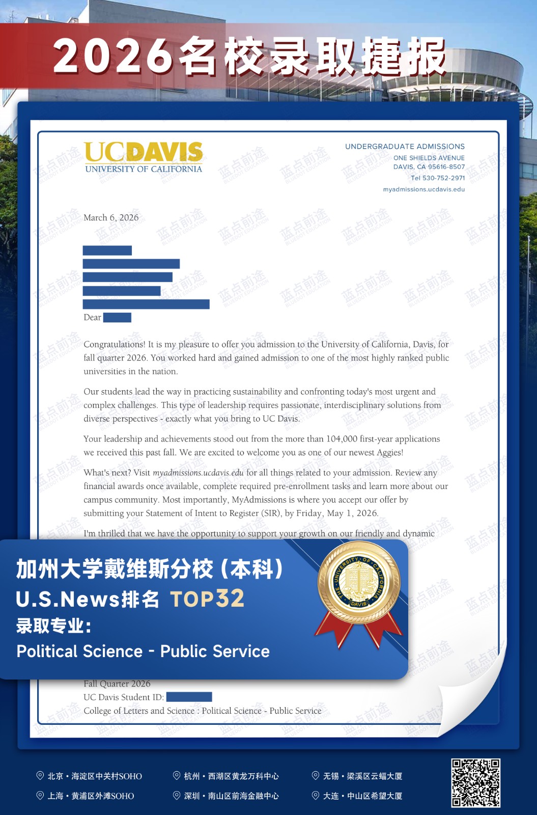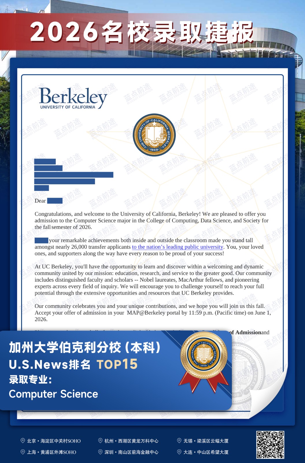 北京蓝点前途留学咨询有限公司由海外名校教授、前招生官、名校毕业学生、外籍文书导师等人员组成。公司于2013年在美国纽约成立,2018年在北京设立华北地区总部,先后在杭州、上海、深圳成立分公司。