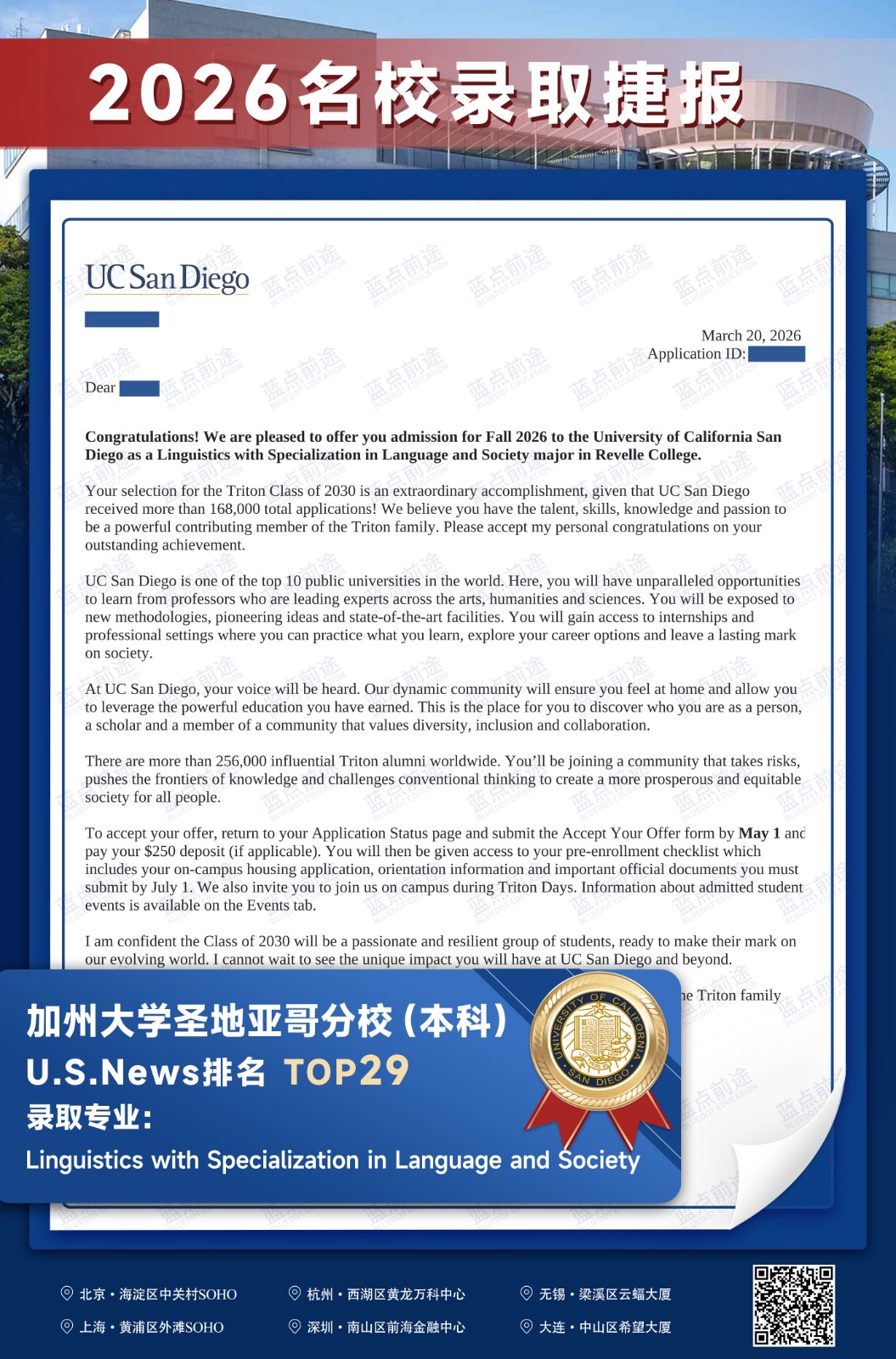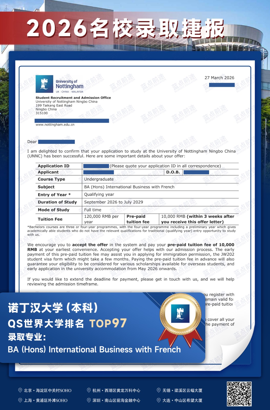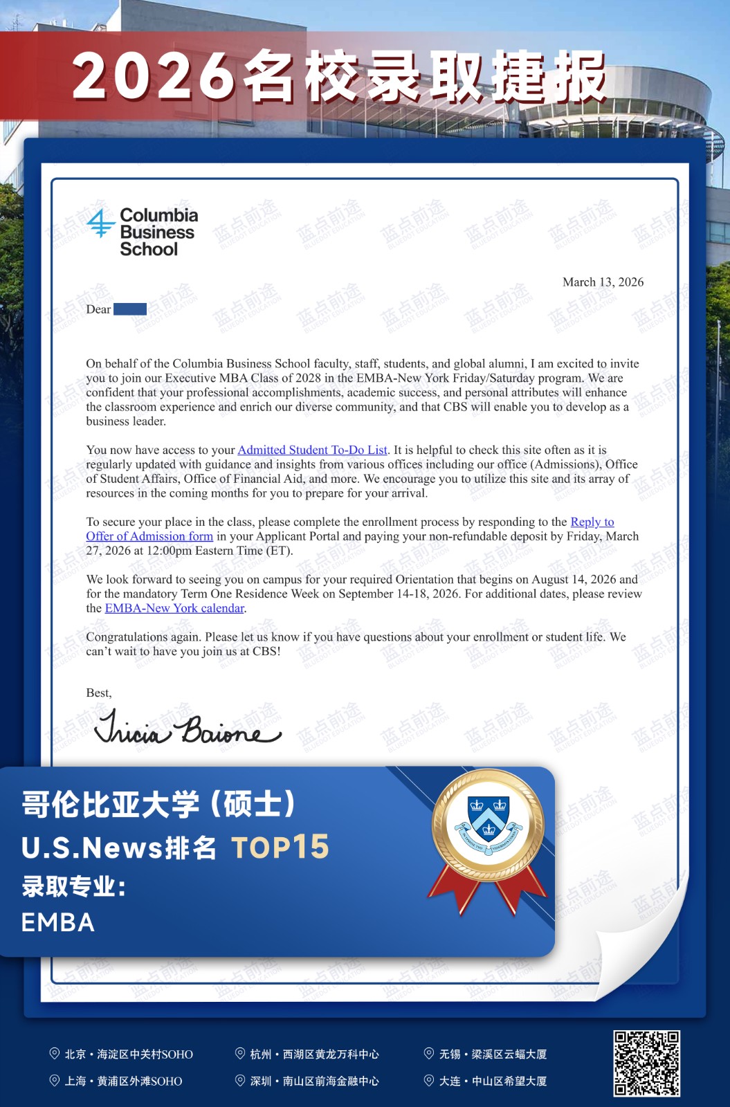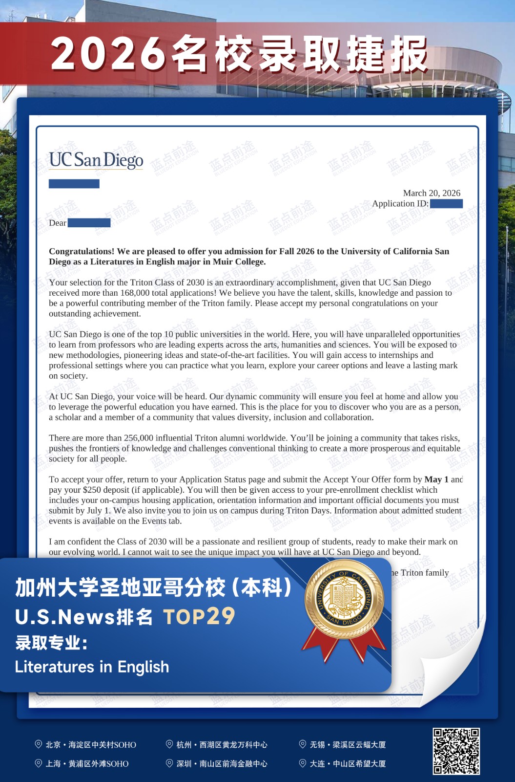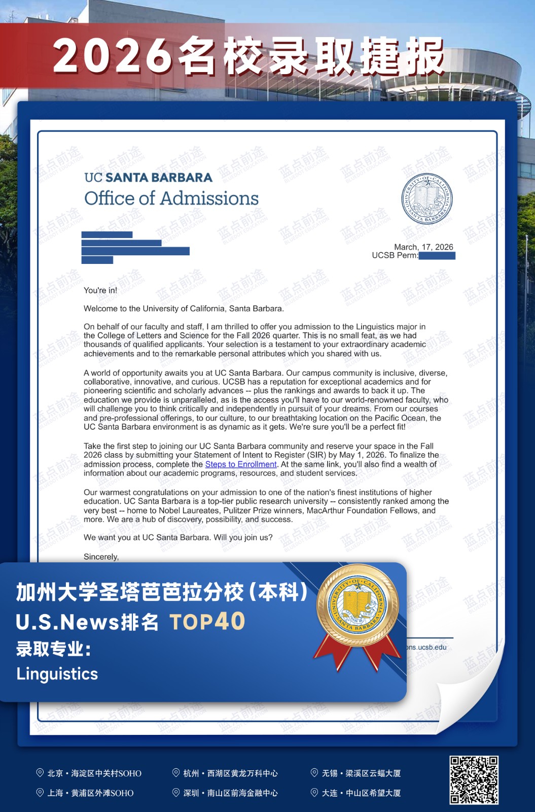 北京蓝点前途留学咨询有限公司由海外名校教授、前招生官、名校毕业学生、外籍文书导师等人员组成。公司于2013年在美国纽约成立,2018年在北京设立华北地区总部,先后在杭州、上海、深圳成立分公司。
