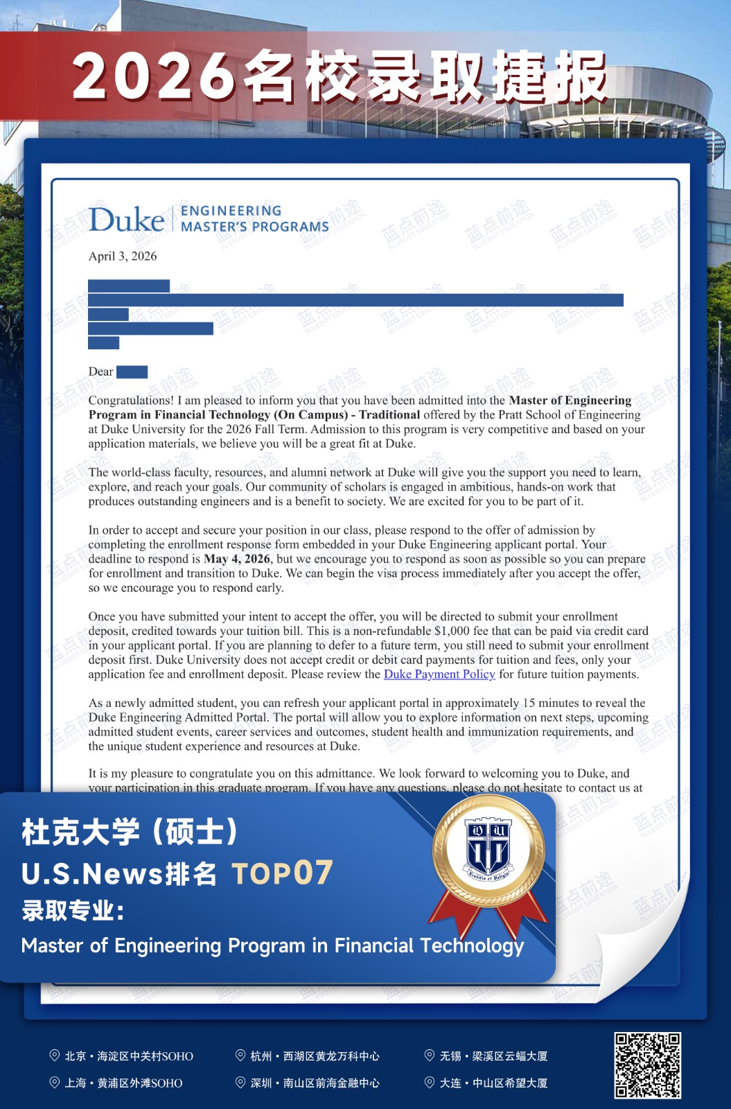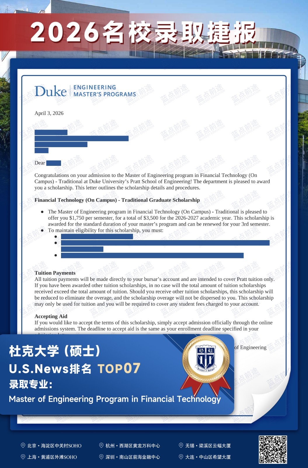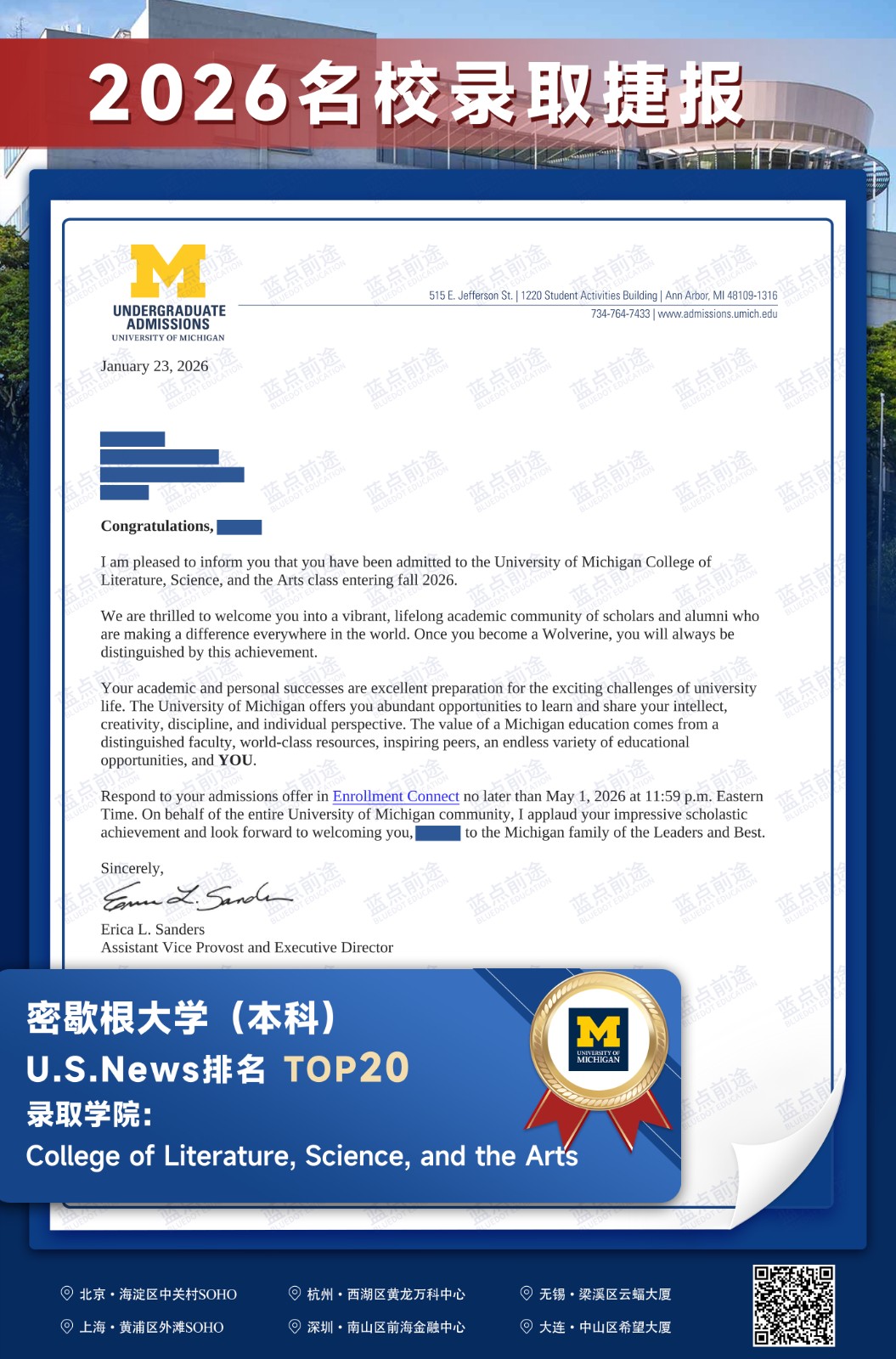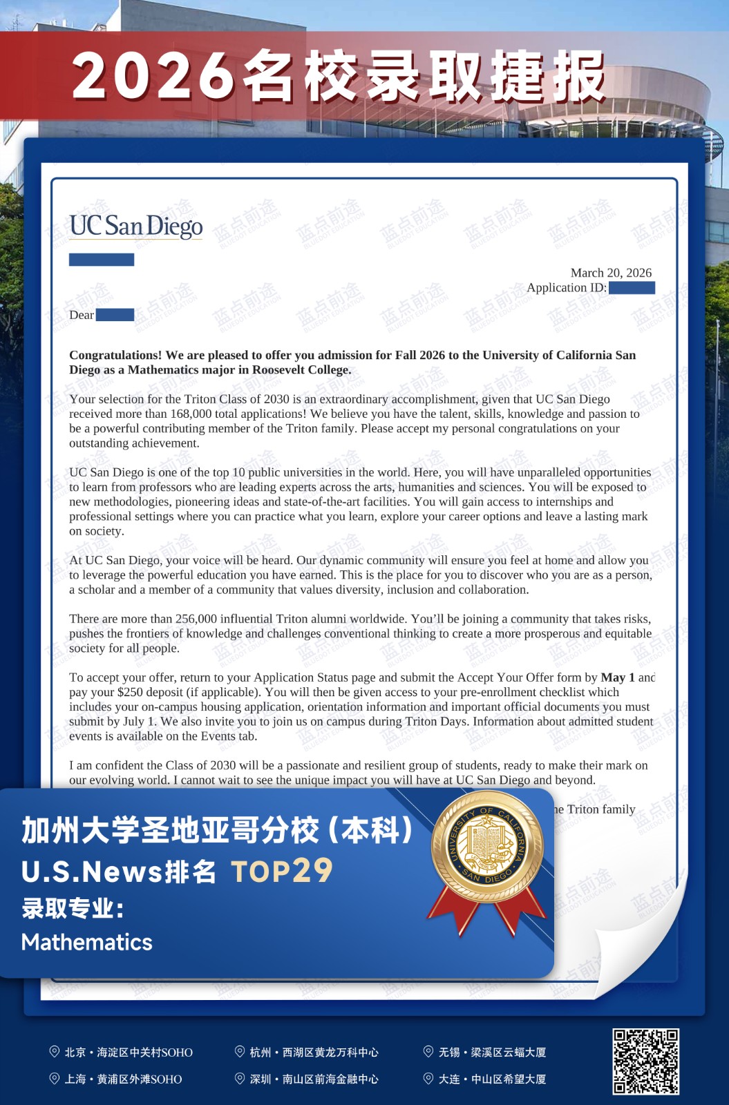 北京蓝点前途留学咨询有限公司由海外名校教授、前招生官、名校毕业学生、外籍文书导师等人员组成。公司于2013年在美国纽约成立,2018年在北京设立华北地区总部,先后在杭州、上海、深圳成立分公司。
