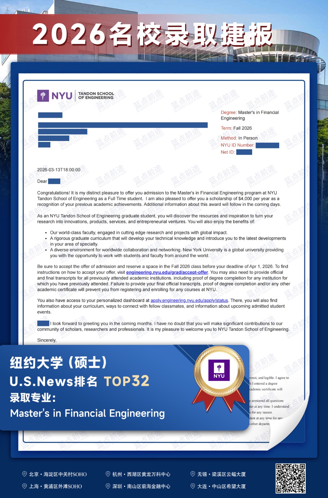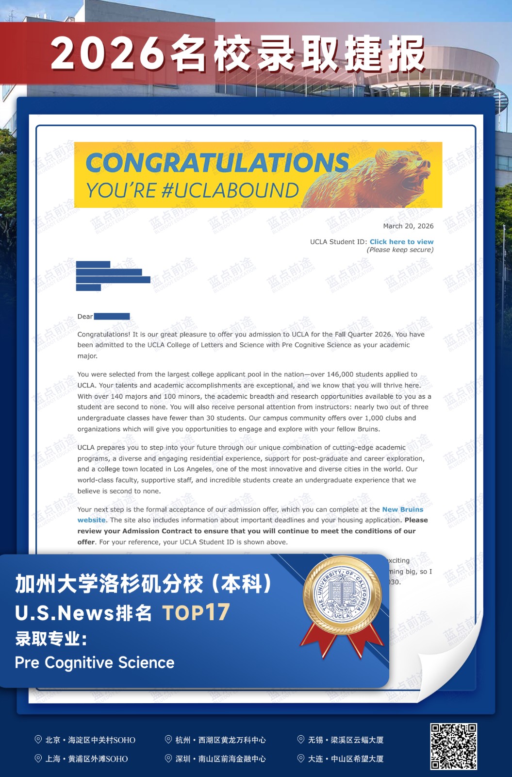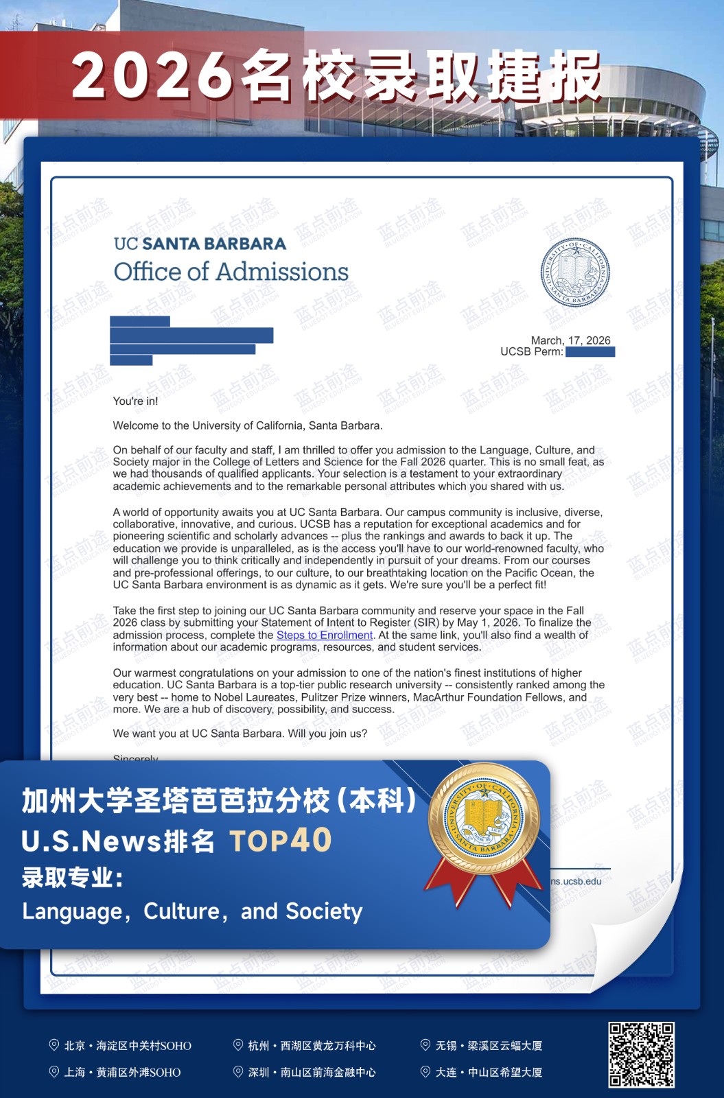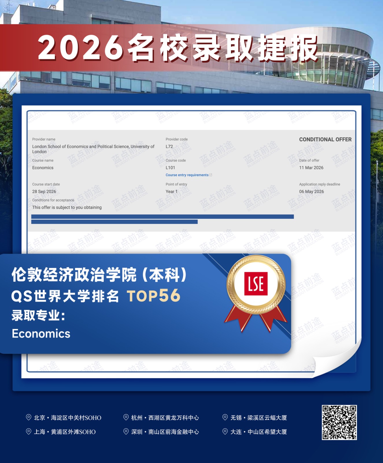 北京蓝点前途留学咨询有限公司由海外名校教授、前招生官、名校毕业学生、外籍文书导师等人员组成。公司于2013年在美国纽约成立,2018年在北京设立华北地区总部,先后在杭州、上海、深圳成立分公司。